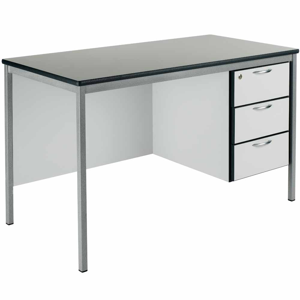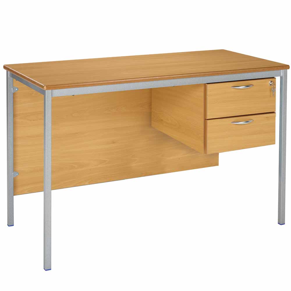 Our Metalliform Teachers Desks with Fully Welded Frame are designed for use in education, & fully compliant with BS EN 1729. Metalliform Tables come with durable laminate tops, and a choice of edging from MDF bullnose edge as standard, or ultra durable spray Duraform PU that's fully bonded into the table edge. This makes each top easy to maintain and keep clean. This desk complements our range of Fully Welded Tables, and come with a either a 2 drawer or 3 drawer option, and modesty panel.