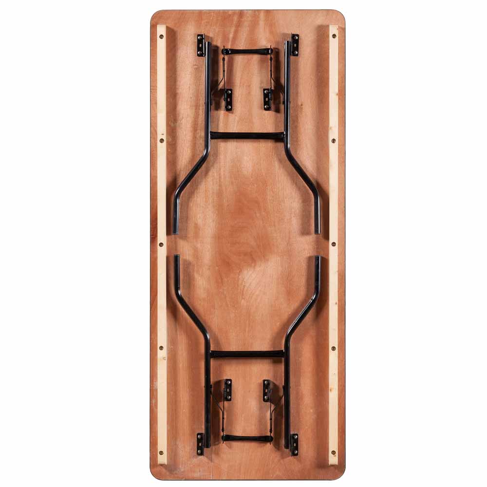The Wooden Rectangular Folding Trestle Table is a great solution for multi-use spaces. These rectangular tables are easy to set out for use when required, and just as easy to stow away when not in use. Its strong steel frame is paired with a robust plywood table top for longevity and reliability.